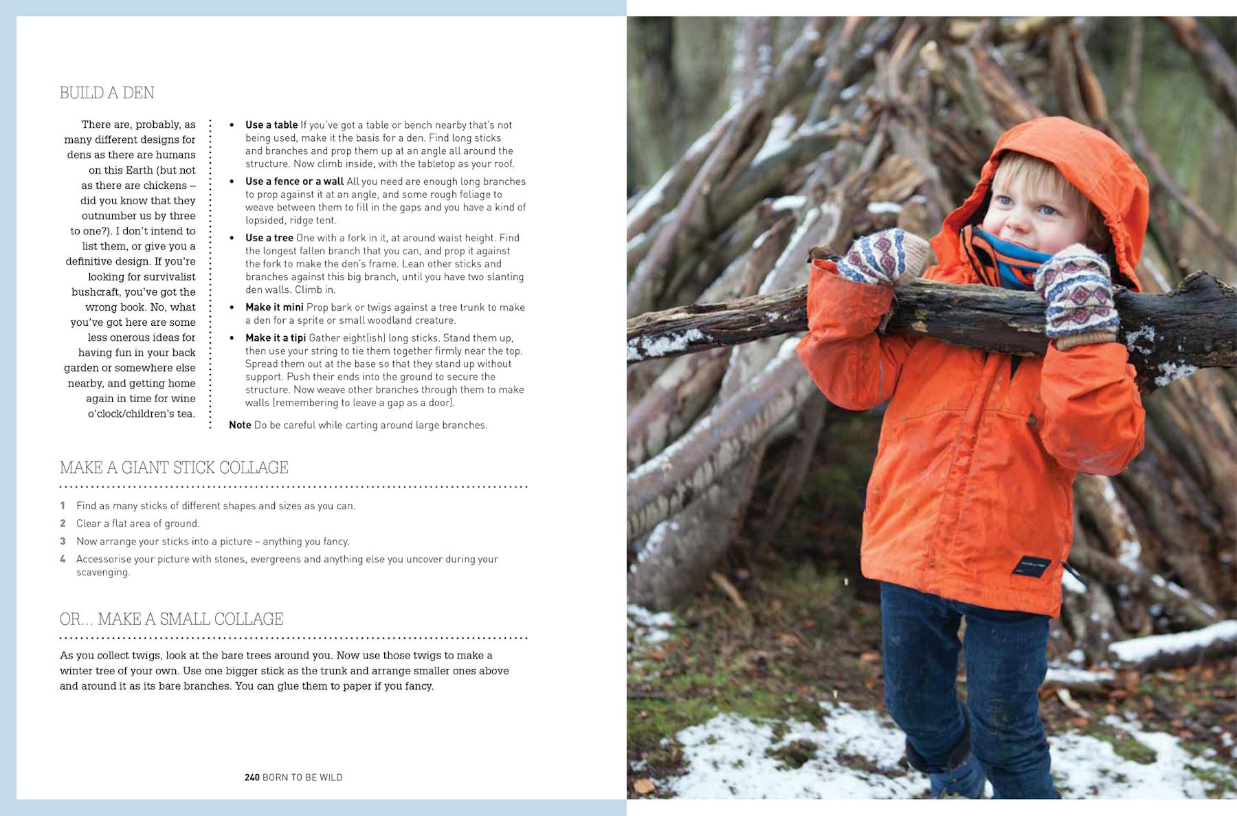 Packed with great photos of real families in the outdoors, ‘Born to Be Wild’ contains easy-to-follow instructions for activities that require nothing more sophisticated than a small person’s imagination and access to a little outdoor space.