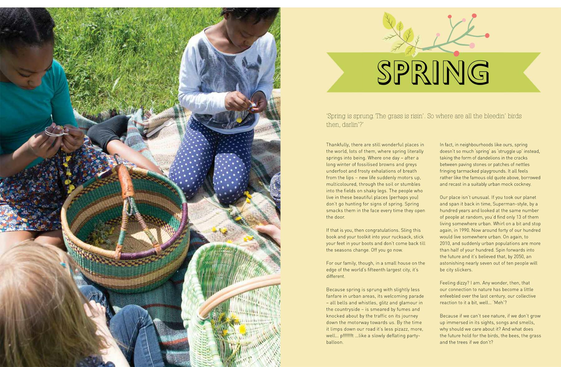 Nature lays on magical materials for free each season, from fallen leaves and twigs, moulted feathers, sand and shells, to mud, puddles and rain. Everything else you’ll need for these activities is already hiding in your cupboards at home. No expensive art supplies of outward-bound kit required. All you need are the toolkit items at the front of the book - ordinary household essentials like scraps of paper, string, glue, recycled food containers and an empty jar or two.